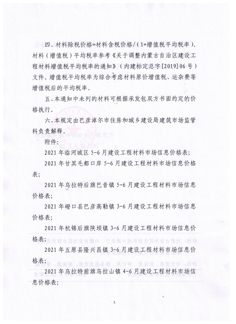 附件2021年磴口县巴彦高勒镇3-6月建设工程材料市场信息价格表.pdf.pdf附件2021年甘其毛都口岸5-6月建设工程材料市场信息价表.pdf附件2021年临河城区5-6月建设工程材料市场信息价格表 (1).pdf附件2021年杭锦后旗陕坝镇3-6月份建设工程材料市场信息价格表.pdf附件2021年乌拉特后旗巴音镇5-6月建设工程材料市场信息价格表.pdf附件2021年乌拉特前旗乌拉山镇4-6月建设工程材料市场信息价格表.pdf附件2021年乌拉特中旗海流图镇3-6月份建设工程材料市场信息价格表.pdf附件2021年五原县隆兴昌镇3-6月建设工程材料市场信息价格表.pdf