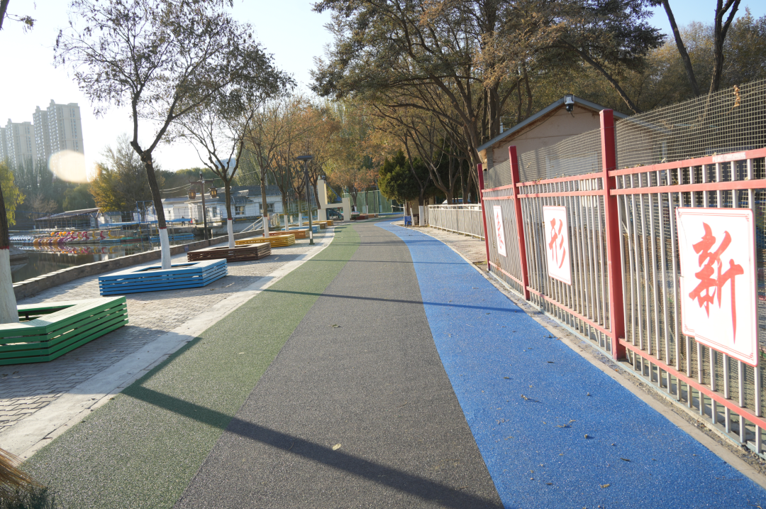 走进改造后的人民公园,一股清新与现代的气息扑面而来。原本略显陈旧的园路已全面升级,长达2055米的柏油路面平坦宽阔,两侧铺设的彩色陶瓷颗粒如绚丽的彩带,不仅美观,更增添了行走的舒适感。漫步其中,脚下传来沉稳而柔和的触感,让人不自觉地放慢脚步,享受这份宁静与惬意。