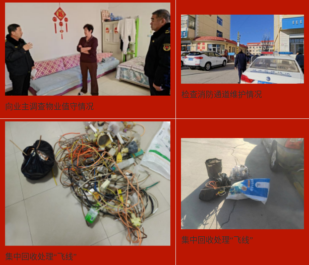 岁末年初,新春将至,为筑牢我旗住宅小区安全防线,保障居民平安祥和过节,1月31日,执法局联合住建、消防部门,出动执法人员30名、执法车辆6辆,分成6个检查组,对全旗101个物管住宅小区开展安全隐患专项排查。此次检查严格坚持“全覆盖、零容忍、严整改”原则,聚焦小区火灾隐患易发多发关键环节精准发力,重点针对小区飞线充电、电动车入户、公共区域堆放杂物、堵塞消防通道等突出安全隐患,开展全方位、无死角排查整治。经过为期3天的集中行动,共整治占用消防通道101处,处理飞线1338根,清理乱堆杂物155处,切实把安全隐患消除在萌芽状态。