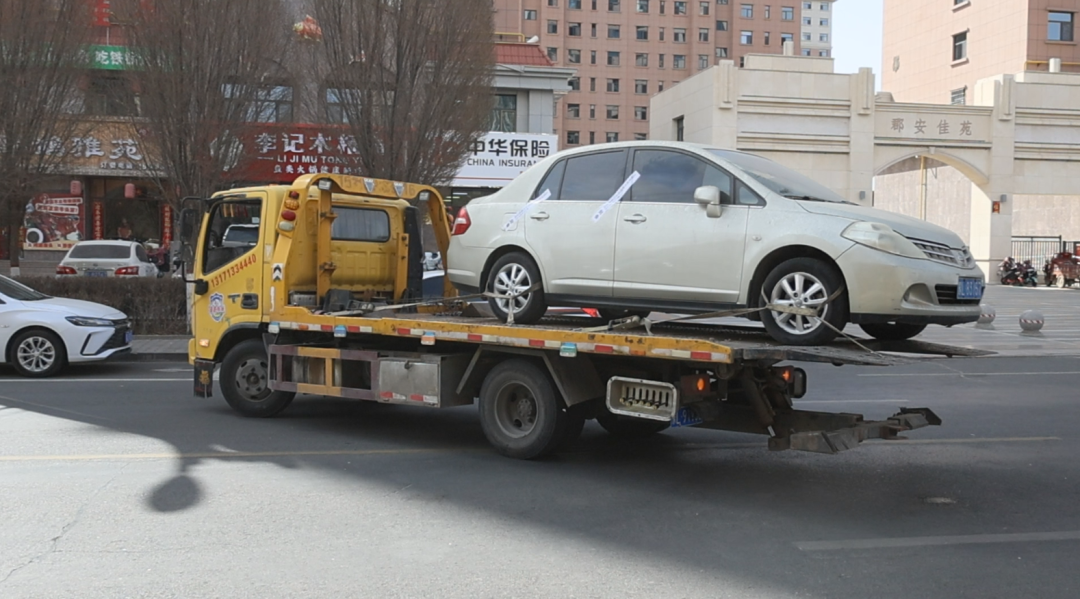 五原县城市管理综合执法局交通中队中队长杨国祥介绍:“自 3 月 27 日起,我们执法人员对城区公共停车位内长期占用、无人使用的‘僵尸车’开展全面排查、逐一登记。针对排查出的 63 辆车辆,通过电话告知、张贴限期挪移告知单及催告单等方式逐一通知车主,并通过官方微信公众号、社区宣传群等平台同步发布挪车公告,提醒车主自行整改。”