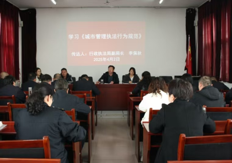 会上,磴口县城市管理综合行政执法局副局长李佩秋领学了《城市管理执法行为规范》全文,从执法程序、着装规范、用语标准、监督机制等内容展开详细解读,重点强调执法过程中必须坚持“严格、规范、公正、文明”四大原则,要求全体干部将《城市管理执法行为规范》中的各项要求内化于心、外化于行。