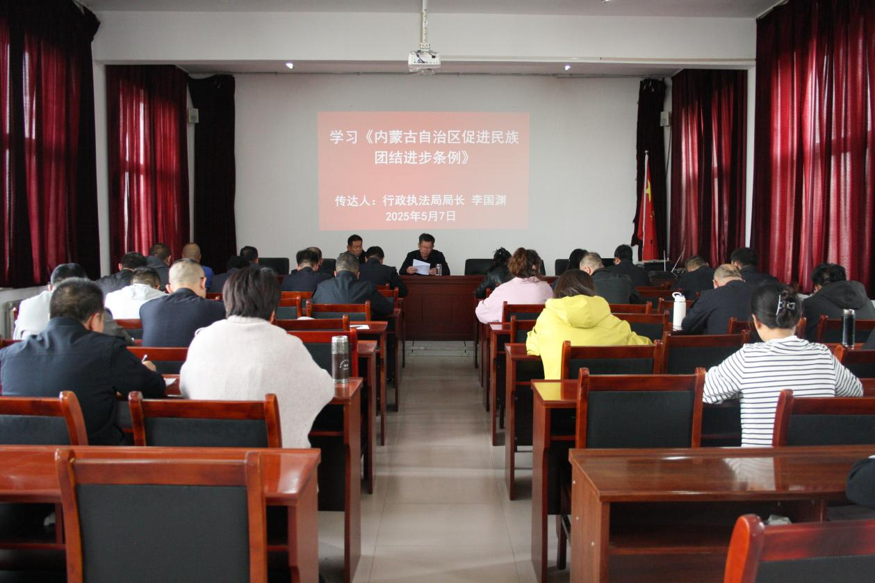 5月7日,磴口县城市管理综合行政执法局以“民族政策宣传月”为契机,组织全体干部深入学习了《内蒙古自治区促进民族团结进步条例》。