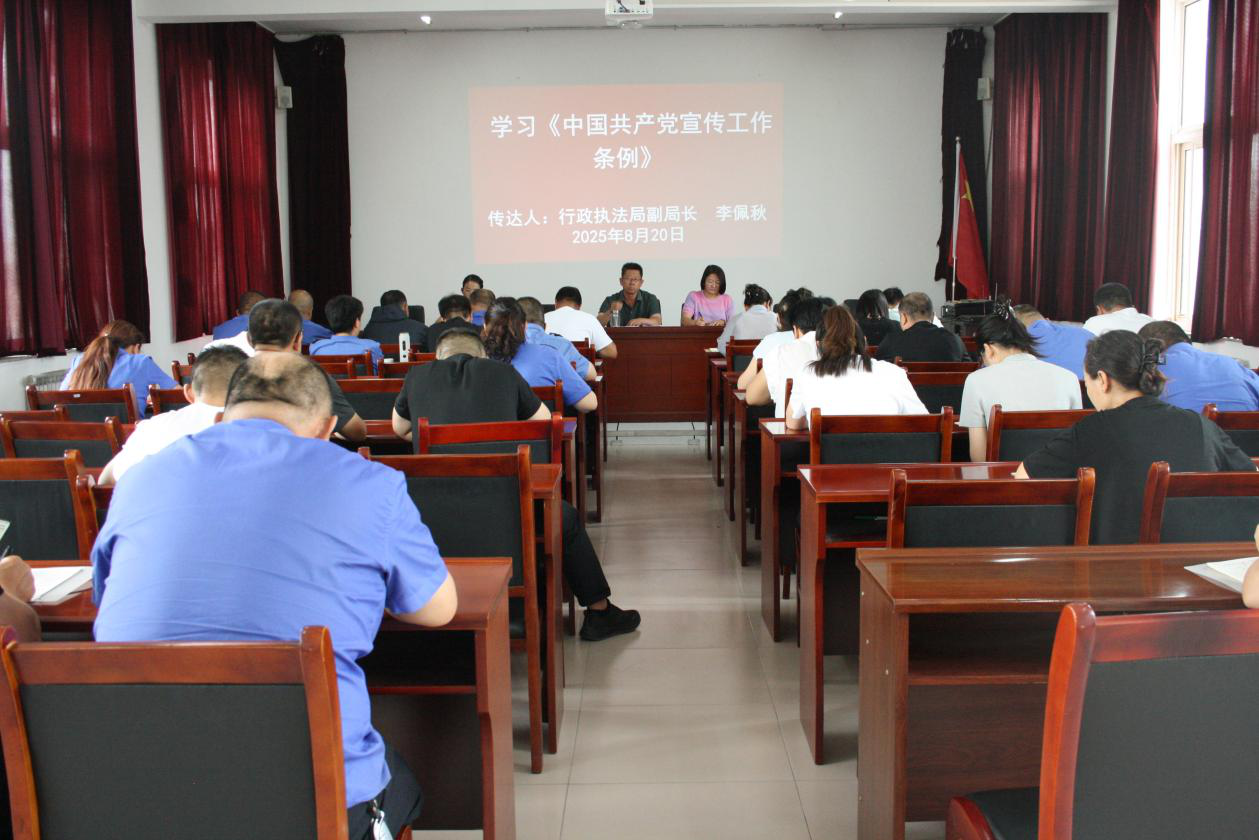 为深入贯彻落实党的宣传工作方针政策,切实提升城管队伍宣传工作水平,8月20日,磴口县城市管理综合行政执法局组织全体干部深入学习《中国共产党宣传工作条例》。
